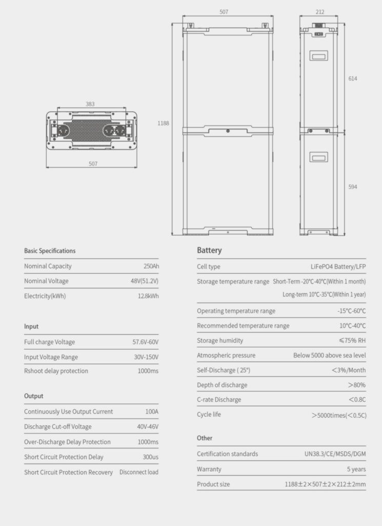 بطارية ليثيوم ١٢.٥ كيلو وات ٢٥٠ امبير قابلة للتكديس