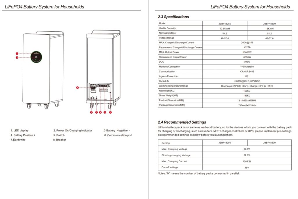 بطارية ليثيوم ١٥ كيلو واط ٣٠٠ أمبير