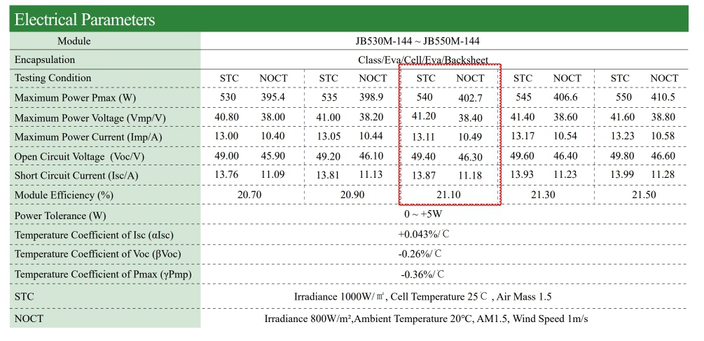 الألواح الشمسية ٥٤٠ واط
